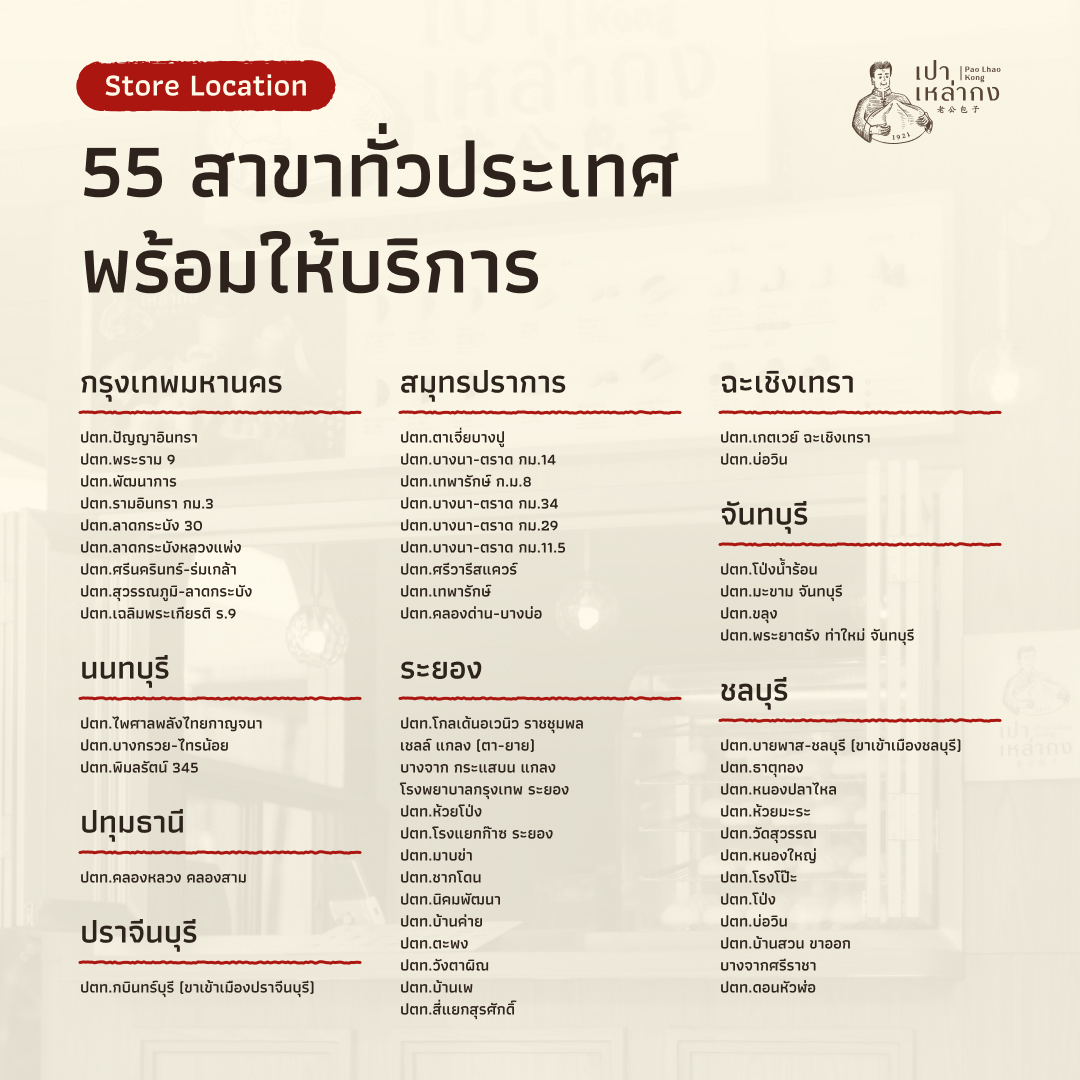 อีกหนึ่งทำเลทองบนถนนเส้น 345 ที่รายล้อมด้วยหมู่บ้านและคอมมูนิตี้มากมาย สาขานี้คือ “จุดแวะพักแห่งความอบอุ่น” สำหรับคนโซนปทุม–นนท์โดยเฉพาะ ไม่ต้องขับเข้าเมืองให้วุ่นวาย แค่แวะ “เปา เหล่า กง” สาขานี้ ก็ได้อิ่มกับซาลาเปานุ่ม ๆ หอมกรุ่นในไม่กี่นาที 🍮 จะซื้อกลับบ้าน หรือฝากคนที่รัก ก็อร่อยได้ง่าย ๆ ทุกเวลา