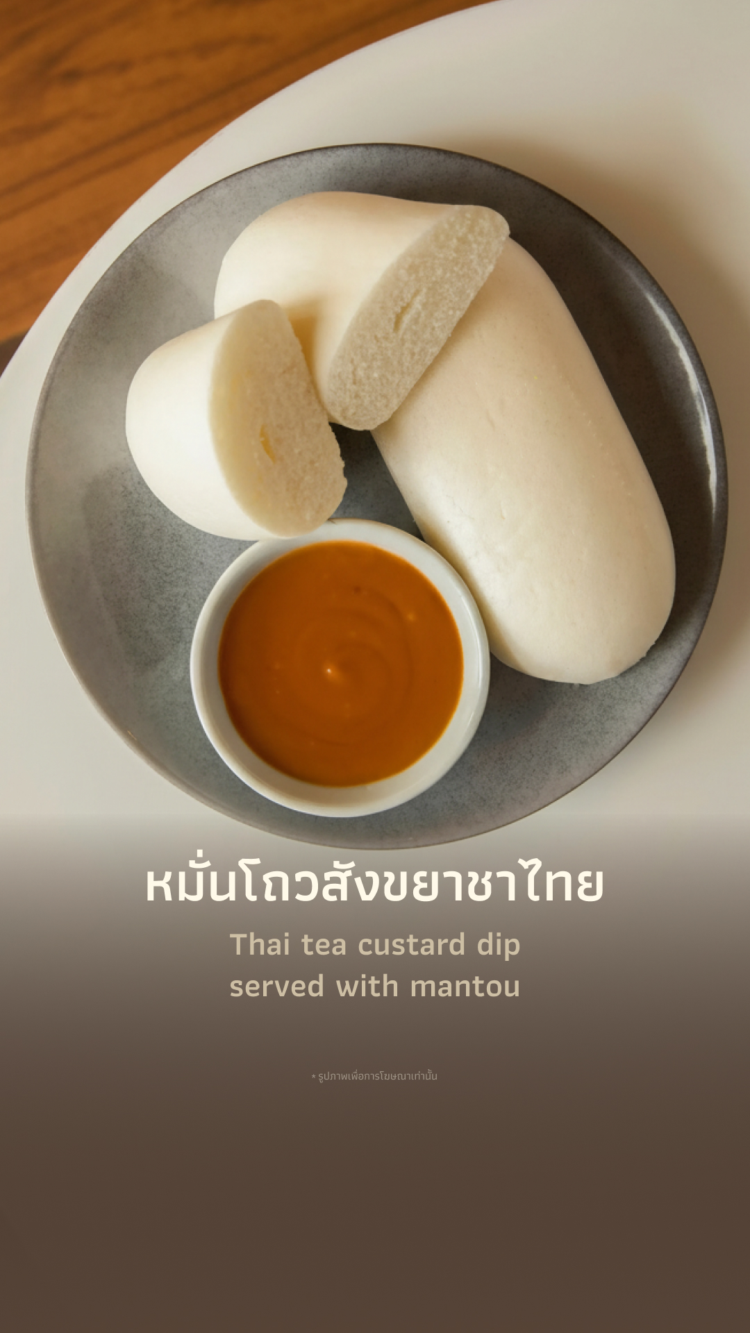 - ช่วงบ่าย: หมั่นโถวฟักทอง หรือสังขยาชาไทย เป็นของว่างเบา ๆ